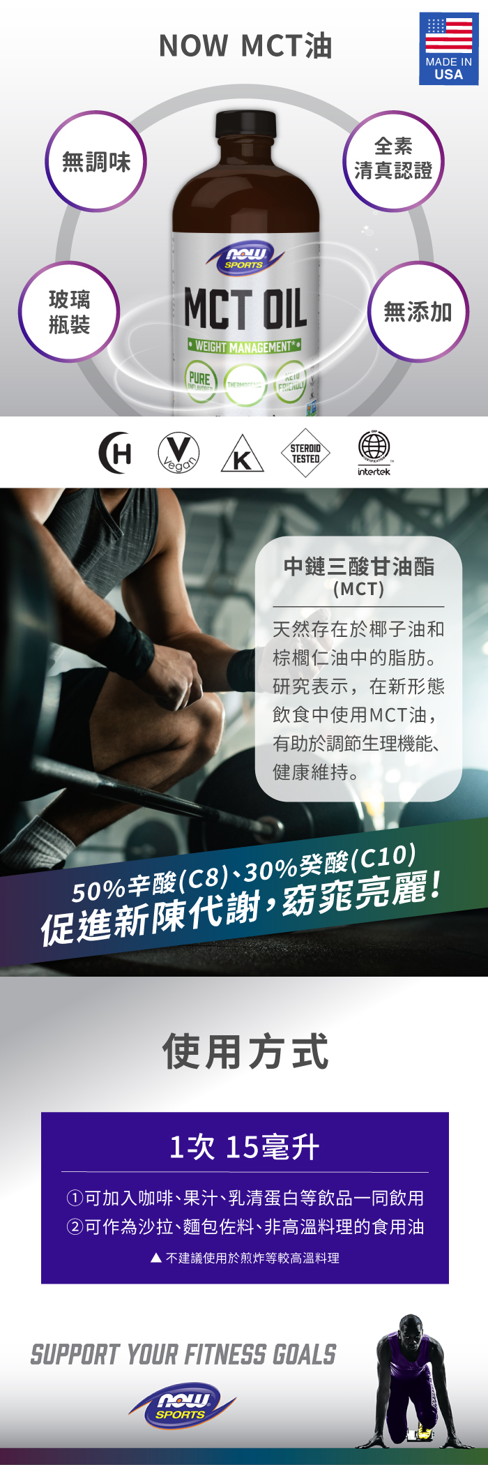 取1匙(約15毫升)可用於涼拌、佐料、或加入咖啡、乳清蛋白等飲品,不建議使用於煎炸等較高溫料理。 |