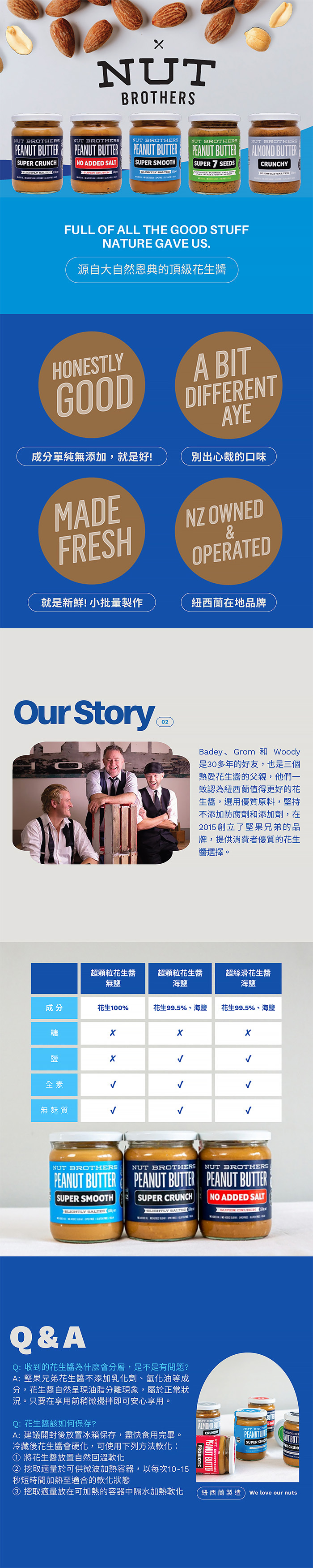 | 品名: | 【NUTBROTHERS】超絲滑花生醬(海鹽) |