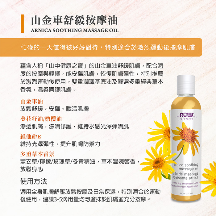 【NOW】山金車舒活熱力按摩油(8oz/237ml)Arnica Warming Relief Massage Oil |