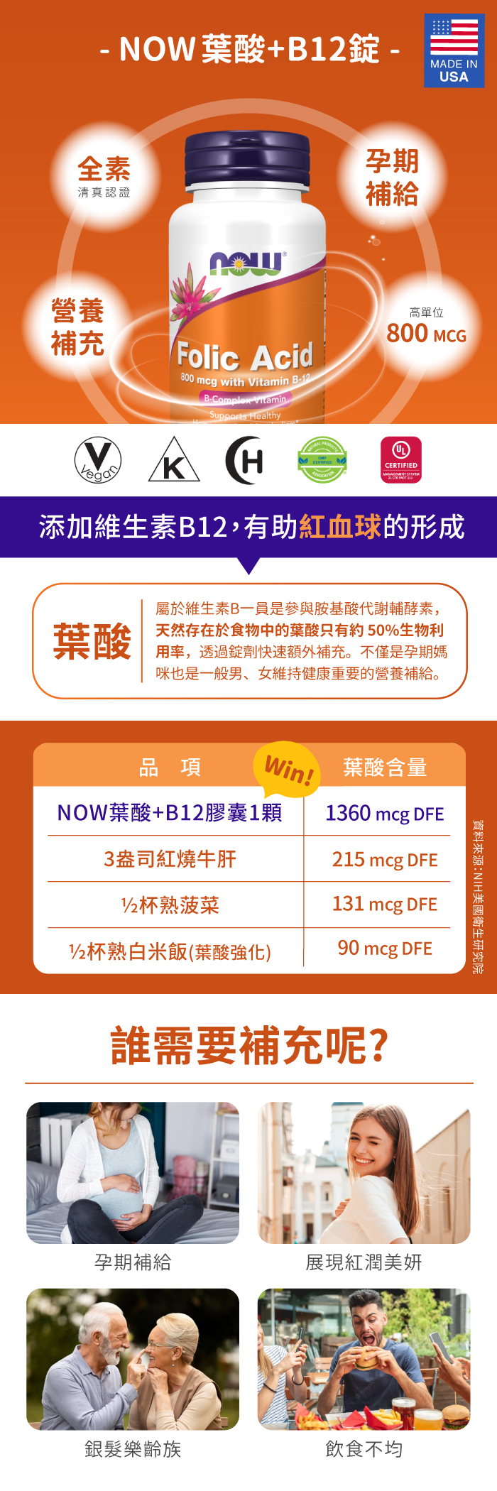 | 營養成份: | 維生素B12 25微克、葉酸800微克 |