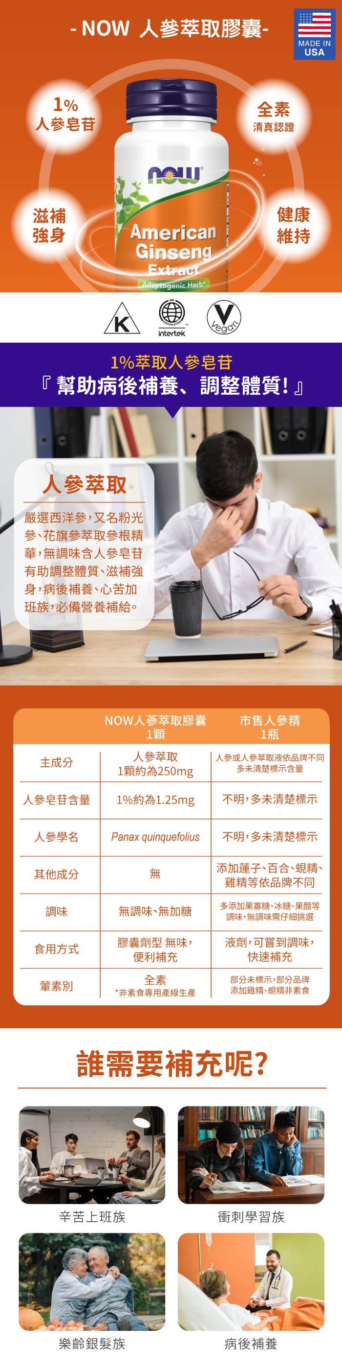 西洋參萃取物(麥芽糊精、西洋參萃取物)、羥丙基甲基纖維素、L-抗壞血酸棕櫚酸酯(抗氧化劑)。 |