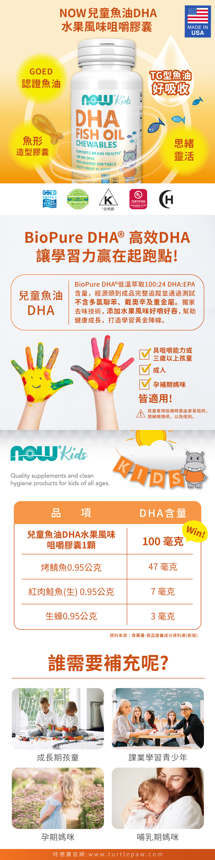 【NOW】兒童魚油DHA水果風味咀嚼膠囊 |