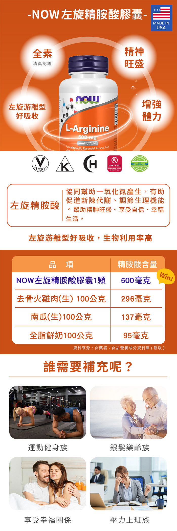 | 品名: | 【NOW】左旋精胺酸膠囊1瓶(100顆) |